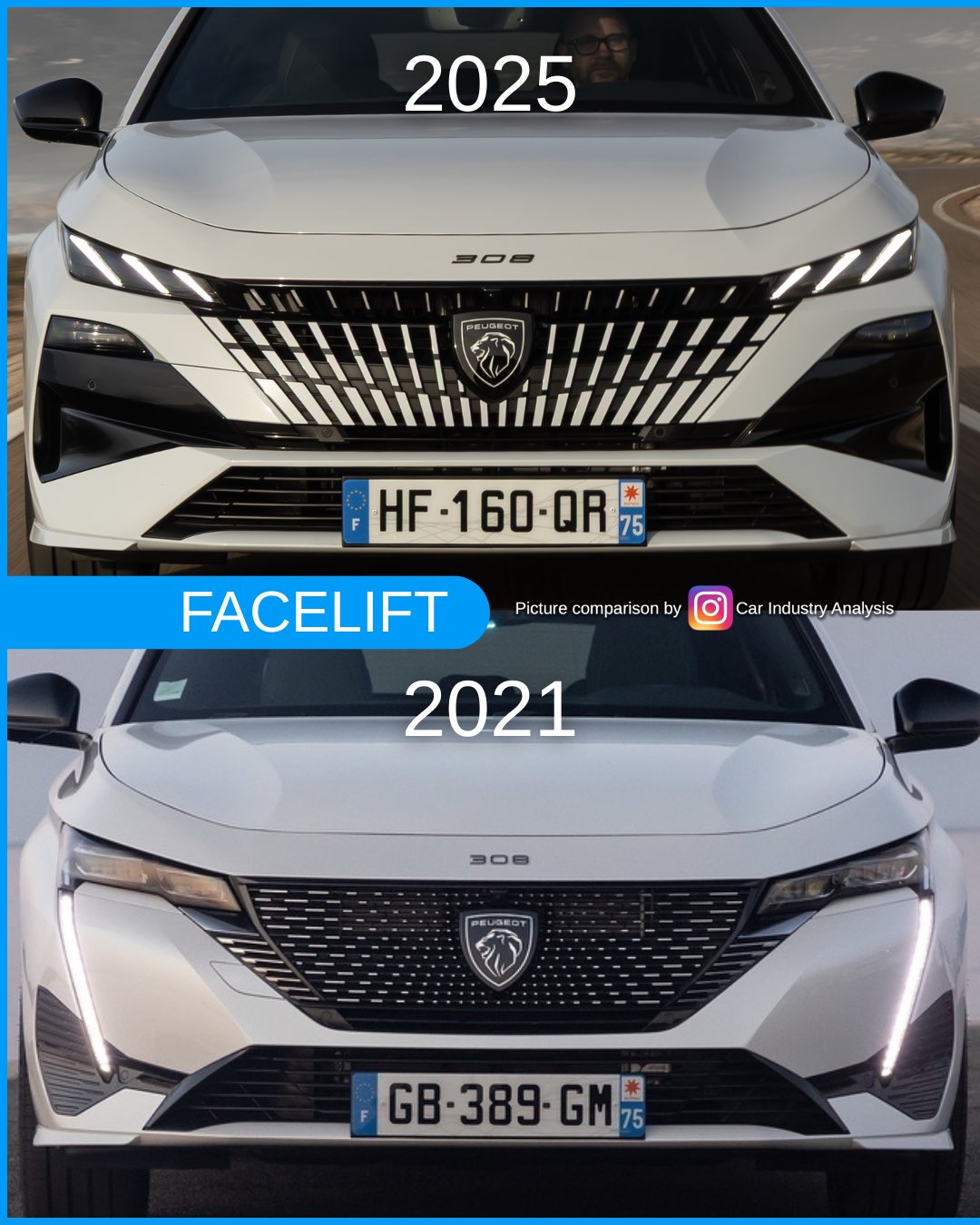 Обновлённый Peugeot 308 2025 — новая решётка, светодиодные «когти» и современный интерьер.